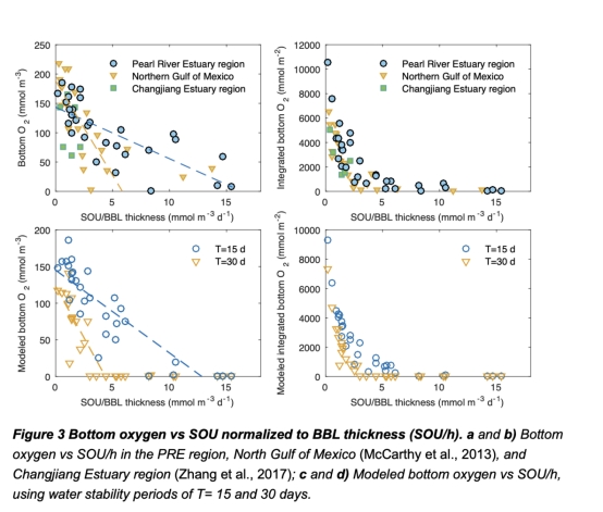 量化沿海缺氧的生物地球化學(xué)(沉積物耗氧)和物理驅(qū)動(dòng)因素(如分層),開(kāi)發(fā)一個(gè)簡(jiǎn)單模型以解釋區(qū)域差異并預(yù)測(cè)缺氧發(fā)展趨勢(shì)。