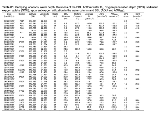(2)BBL厚度控制沉積物耗氧對(duì)缺氧的貢獻(xiàn),薄層區(qū)域缺氧敏感性更高。