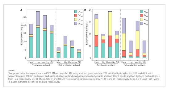 應用價值:添加芳香族老碳(如褐煤)可優先形成穩定Fe-OC,減少鐵氧化物引發的碳礦化,適用于濕地碳匯恢復。