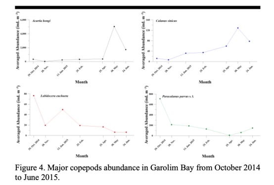 橈足類豐度:優勢種占比(如Acartia hongi占75%)及季節性變化——圖3D、4;