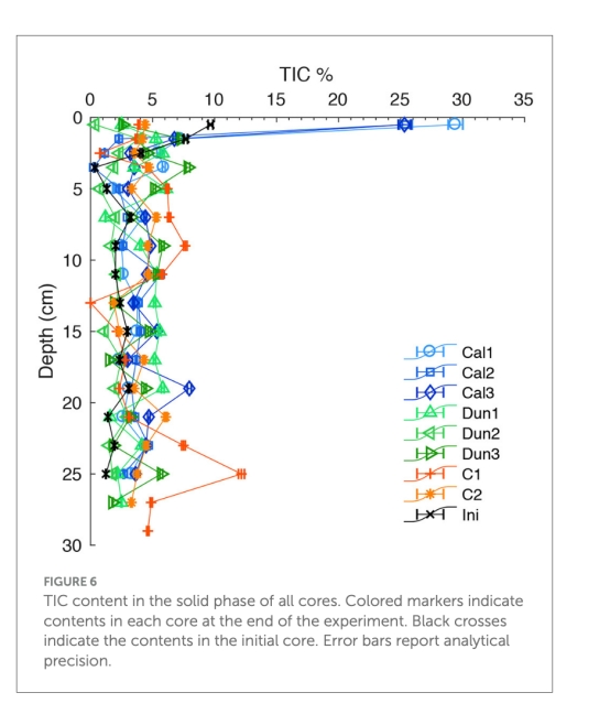 意義:證實添加的方解石滯留于沉積物表面,未因生物擾動埋藏,支持底層水直接溶解機制。數據來源:圖6顯示TIC垂向分布。