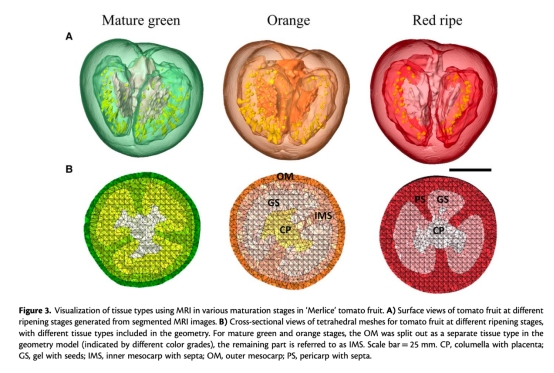通過MRI獲取番茄果實不同成熟階段的三維幾何結構;