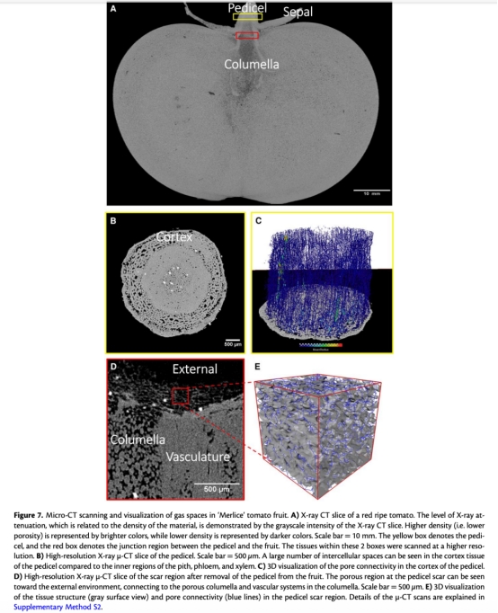 MRI和micro-CT成像數據(圖3、7):獲取果實三維結構和組織孔隙度。意義:構建幾何模型并量化擴散阻力。