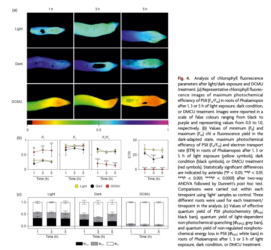 研究旨在驗證蝴蝶蘭根部光合作用的功能,特別是其通過產氧緩解根部缺氧的假設,并探討光照對根部氧氣狀態及代謝的影響。