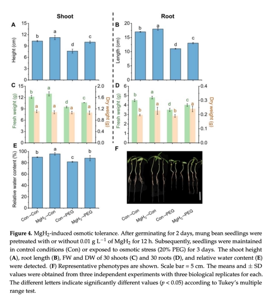 通過滲透脅迫(20% PEG-6000)處理綠豆幼苗,添加MgH2