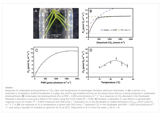 Response of underwater photosynthesis to light, CO2, temperature, and submergence time of Taxodium distichum, a flood-tolerant tree