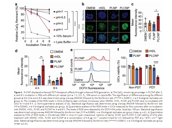 ROS水平:PLCNP處理的GBM細胞ROS強度是PLNP的2.1倍(圖4d)。