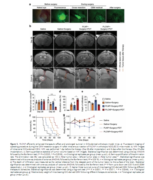 總結:PLCNP通過整合靶向遞送、熒光引導和氧生成功能,為GBM的精準切除和術后殘留清除提供了創(chuàng)新解決方案,具有重要臨床轉(zhuǎn)化價值。