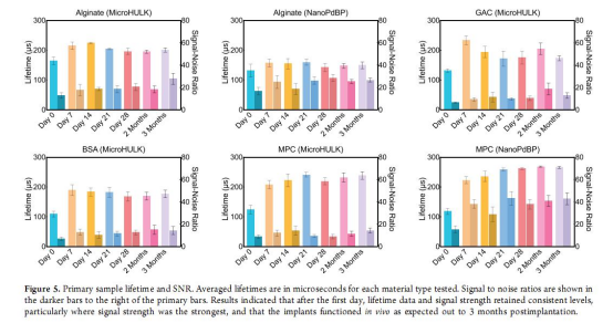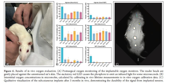 所有傳感器在體內均表現出穩定的氧敏感性,信號持續超過三個月(圖5、圖6B)。