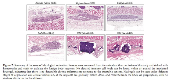 評估傳感器的生物相容性、降解狀態和宿主反應(圖7、表1-3)。