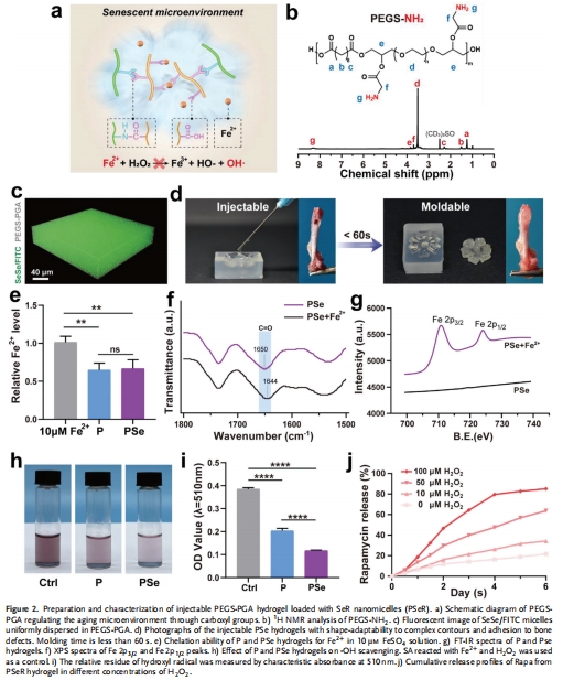 PEGS-PGA水凝膠:通過氨基-羧基交聯形成可注射支架,負載SeR膠束(圖2a-c)。