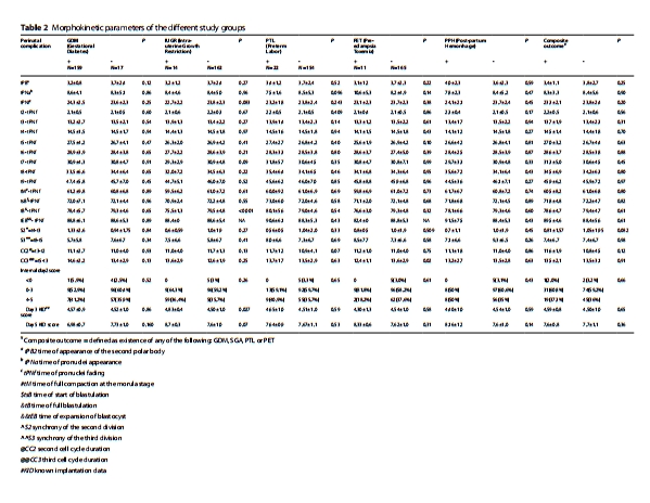 結論:胚胎形態動力學參數與產科并發癥無顯著關聯。