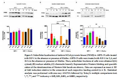 關(guān)鍵發(fā)現(xiàn):IGF-1促進(jìn)PKM2二聚化及核轉(zhuǎn)位,抑制其酶活性,導(dǎo)致細(xì)胞能量代謝紊亂(氧化磷酸化抑制),但增強(qiáng)抗氧化能力;Klotho通過阻斷IGF-1信號通路逆轉(zhuǎn)上述效應(yīng)。