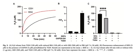 數據:用熒光探針SSP4檢測TGS4處理的GAPDH蛋白的過硫化水平(熒光強度變化)。