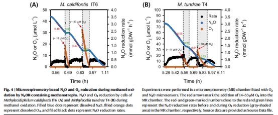 捕捉到CH?氧化過程中O?與N?O的同步消耗(圖5A-B),證明電子傳遞鏈可同時利用兩種電子受體。