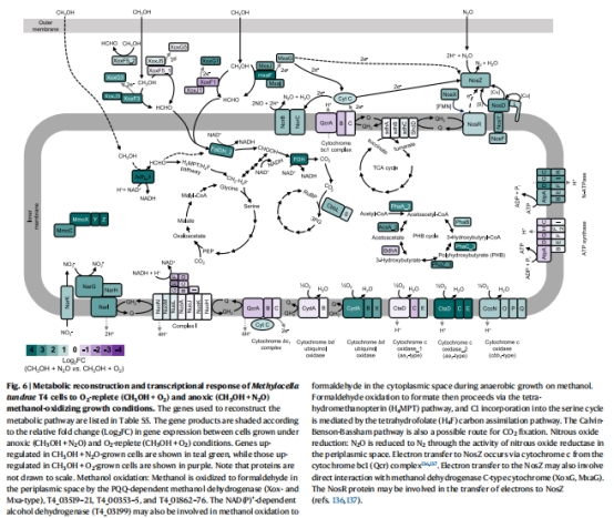 比較厭氧(CH?OH + N?O)、低氧(CH? + O? + N?O)和好氧條件下的基因表達差異(圖6)。