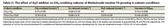添加N?O后,單位O?氧化的CH?量增加37%,生物量增加34%(表2)。
