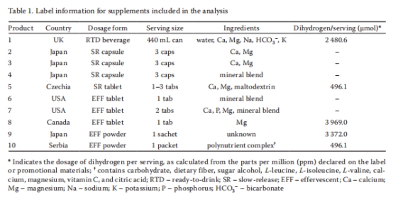 測試10種市售產品(4種緩釋膠囊/片劑、5種泡騰片/粉劑、1種罐裝飲料),來源涵蓋多國品牌(日本、美國、加拿大等)。