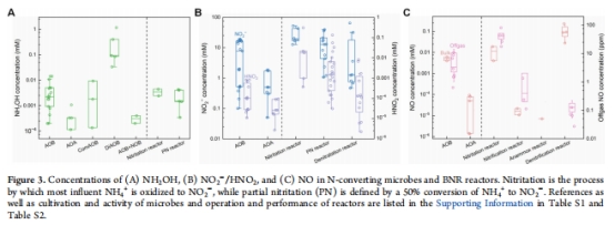 數(shù)據(jù)來源:圖3A-C匯總了純菌培養(yǎng)與BNR反應(yīng)器中RNI的實(shí)測濃度。