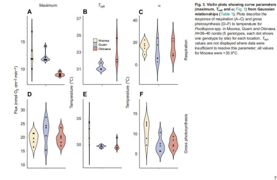 呼吸-Max:Okinawa (6.1) < Guam (9.8) = Moorea (10.3) nmol O? cm?2 min?1。
