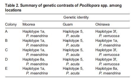 數(shù)據(jù):Moorea為 P. meandrina;Guam為 P. acuta;Okinawa為 P. verrucosa 和 P. meandrina。