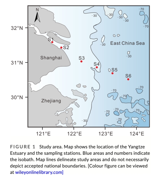 在長江口至鄰近海域設(shè)置鹽度梯度站點(圖1),采集底棲水體樣本。