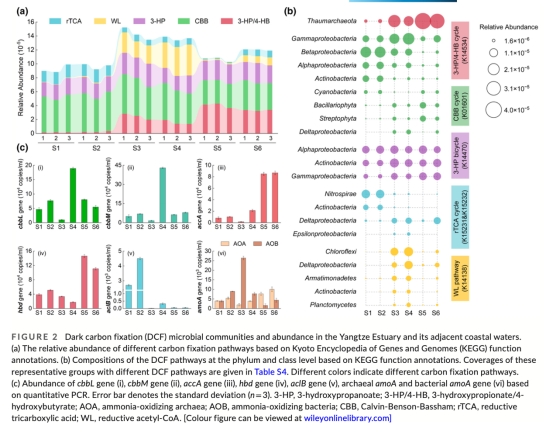通過宏基因組測序分析化能自養(yǎng)微生物群落及碳固定途徑(圖2),結(jié)合qPCR量化功能基因(cbbL、accA等)。