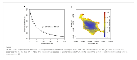 沉積物貢獻(xiàn)隨水深增加(對(duì)數(shù)關(guān)系,圖7A),全盆地平均占比約35%。