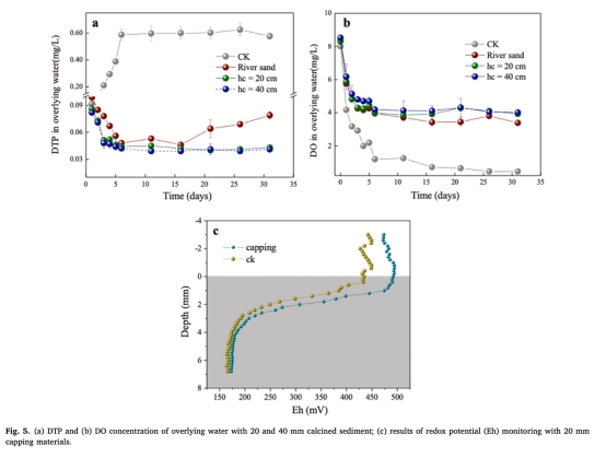 界面環境改善:煅燒沉積物覆蓋層提升沉積物-水界面溶解氧(DO)和氧化還原電位(Eh),抑制鐵結合磷釋放(圖5)。