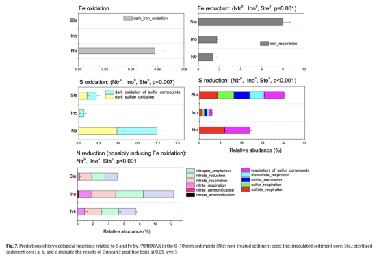 自然組中,電活性硫氧化菌(Candidatus Electronema)通過長距離電子傳遞耦合硫氧化與氧還原,抑制硫化物對鐵磷的破壞(圖3, 圖6)。
