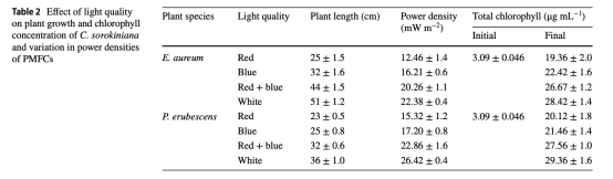 光周期、光源、生長介質、陽極位置和裝置設計對含氧還原微藻生物陰極的植物微生物燃料電池(PMFCs)性能的影響