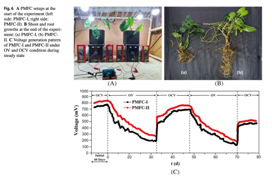 意義:證實光源與營養干預通過增強光合作用及根系分泌物,間接提升底物供給與陰極氧還原效率。