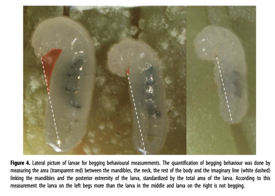 乞食行為:通過幼蟲側位照片量化"頸部彎曲面積"作為乞食指標(圖3d, 圖4)。