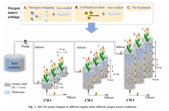 論文針對(duì)潛流人工濕地(SSF CWs)中溶解氧(DO)限制污染物去除效率的問題,提出通過誘導(dǎo)根系冗余發(fā)育(如須根比例增加、根冠比提高)增強(qiáng)植物泌氧(POR),解決氧源不足問題。研究發(fā)現(xiàn):