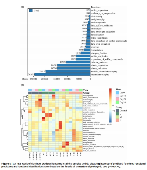 數(shù)據(jù):FAPROTAX預(yù)測顯示電壓組硫酸鹽還原↓、化能異養(yǎng)↑。