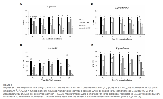 抑制劑實(shí)驗(yàn):3-溴丙酮酸(3BP)抑制發(fā)酵途徑,乙醛酸(GA)抑制卡爾文循環(huán)(圖2, 圖6)。