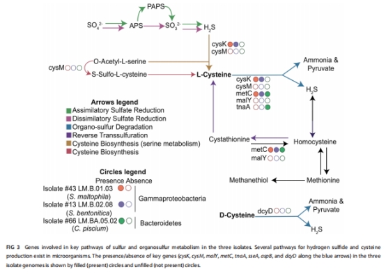 基因組基礎:降解基因(如半胱氨酸脫硫酶相關基因)存在于菌株基因組中(圖3)。