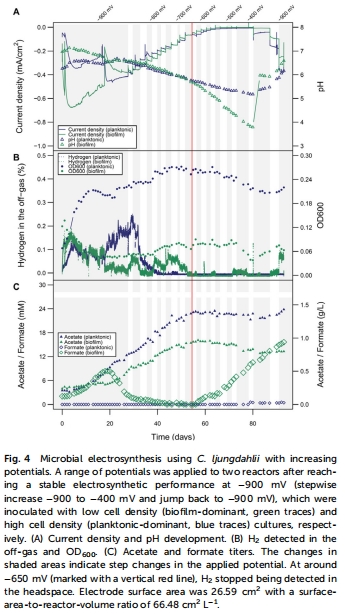 與榮達(dá)梭菌的微生物電合成受益于氫電子介導(dǎo),并允許更多種類的產(chǎn)品