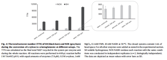 性能優(yōu)勢:在D-木糖→α-酮戊二酸的多酶級聯(lián)中,SH的NAD?周轉(zhuǎn)數(shù)(TTN)高達44,000 mol/mol酶,遠超NOX(圖4)。