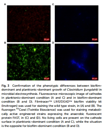 產(chǎn)物分析:HPLC定量有機酸/醇,熒光染色結(jié)合顯微鏡觀察生物膜(圖3C-D)。