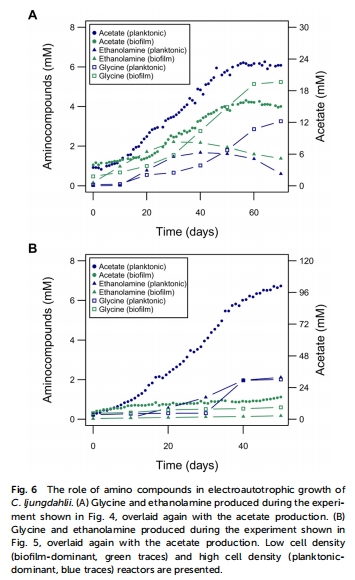 產(chǎn)物多樣性:首次在MES中發(fā)現(xiàn) 甘氨酸(0.39 g/L)和乙醇胺(0.14 g/L) 的顯著積累(圖6),拓展了CO?轉(zhuǎn)化產(chǎn)物譜。