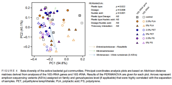 本研究首次揭示可降解(PLA)與不可降解微塑料(PET/PS)對(duì)等足類腸道微生物組及氫代謝的相反效應(yīng):