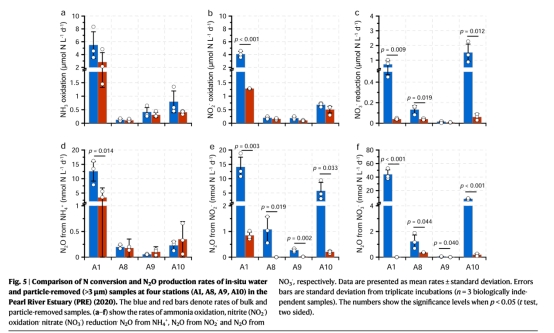 數(shù)據(jù):大顆粒(>20μm)上反硝化貢獻(xiàn)>60% N2O(圖4d,h)