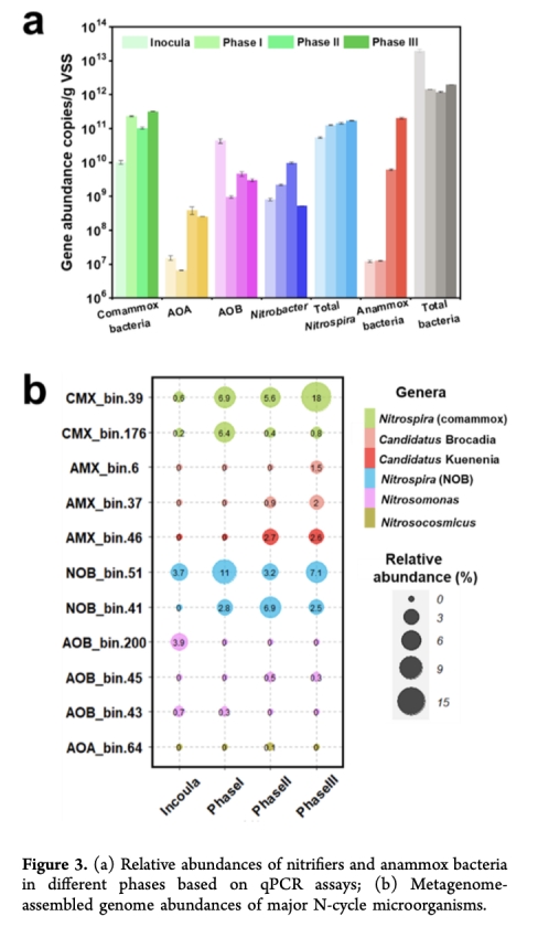 功能基因(圖5b):AnAOB亞硝酸鹽轉運基因(focA, nirC)豐度比NOB-Nitrospira高41.2%,解釋其高效亞硝酸鹽利用能力。
