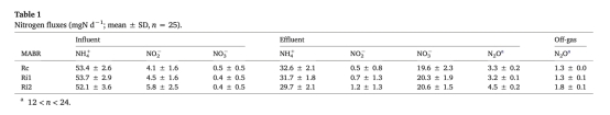 長期運行監測:持續385天,監測硝化速率、氧分壓、N?O排放及TOrCs去除(圖1-2,表1)。