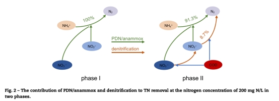 數(shù)據(jù):sCOD添加后PDN/anammox貢獻(xiàn)率91.3%,反硝化8.7%