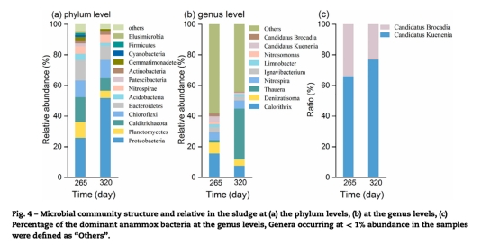 數(shù)據(jù):sCOD添加后Proteobacteria(51.9% → Thauera為主)取代Planctomycetes(10.2%→4.7%);Candidatus Kuenenia成優(yōu)勢anammox菌