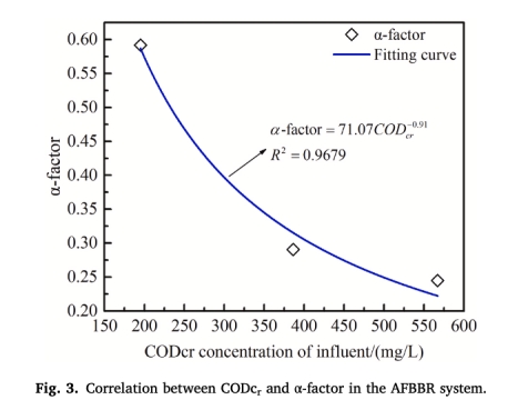 數據:α因子=0.59(C:N=4.79)→0.24(C:N=13.94),擬合得α=71.07×CODcr??·?1(R2=0.9679)。