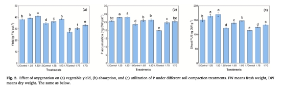 數(shù)據(jù):1.7 g cm?3容重下增氧使產(chǎn)量提高16.1%,磷積累量增加28.1%。