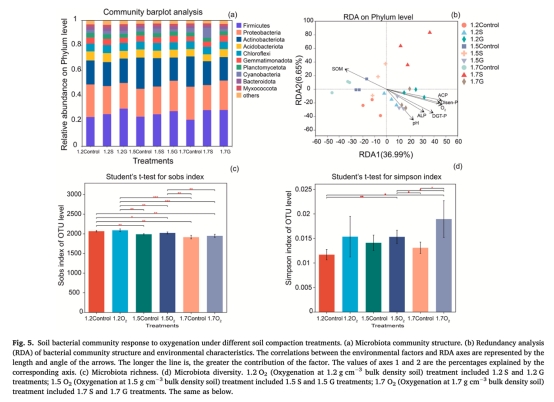 數(shù)據(jù):增氧使1.7 g cm?3土壤菌群多樣性指數(shù)(Shannon)從5.2升至5.8,溶磷菌Proteobacteria相對豐度增加8.5%。